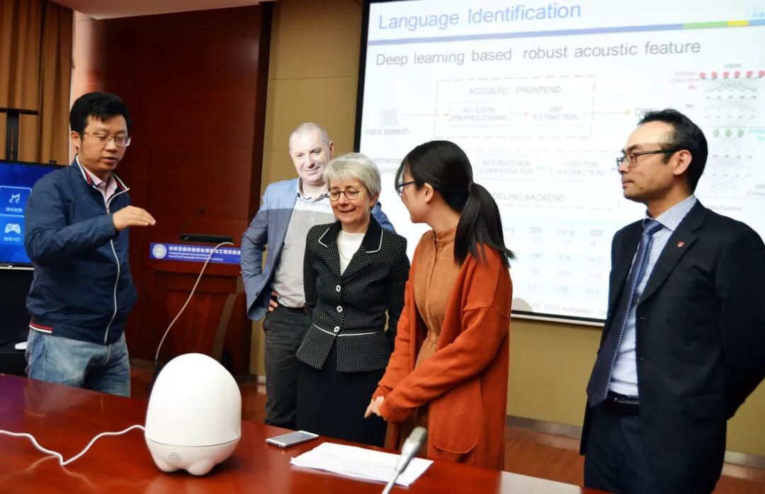 最后,为使代表团对语音国家工程实验室的科研转成果现状有进一步的了解,实验室工作人员还向代表团演示了阿尔法蛋(儿童陪护智能机器人)和超脑魔盒(智能语音电视盒子)等研究成果。