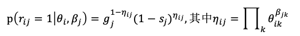 式中 表示试题的猜对概率, 表示试题的失误概率。其函数基于的假设是:学生要答对试题,需要掌握该试题需要的所有知识点并且不失误,否则只能以概率 猜对。